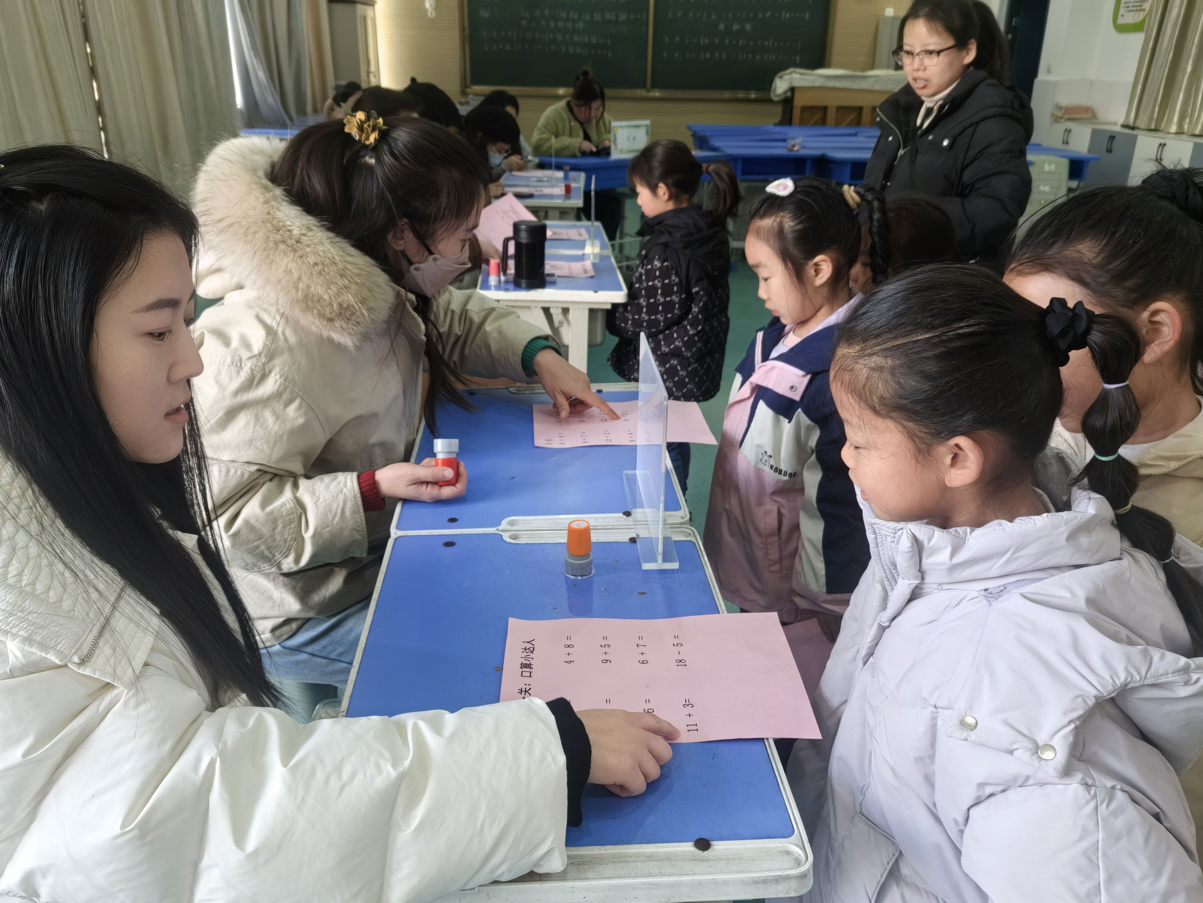 语文测评活动主要考察学生的基础知识和语言表达能力,根据学生所学的拼音、生字、古诗、口语交际等,主要设立了“我会读”“我会背”和“我会说”三个闯关项目。测评现场孩子们自信满满,书声琅琅。数学主要考察口算、动手操作、解决问题等方面,设立了“我会算”“我会数”和“我会说”三个趣味闯关活动,提高学生的计算能力和数学思维能力。孩子们一个个化身数学小达人毫无畏惧,纷纷参与挑战,在趣味闯关中认真体验生活中的数学。老师们耐心倾听,认真评价。